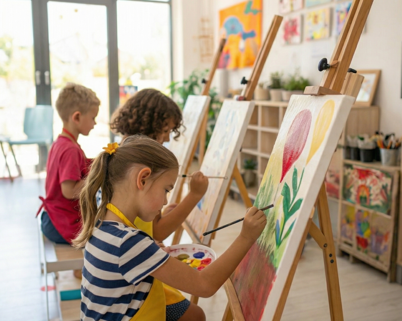 Bei Kids & Paint verbringt ihr gemeinsam 2 kreative Stunden: Ihr bekommt Leinwand und Farben, werdet Schritt für Schritt von unseren Künstler:innen angeleitet und nehmt am Ende eure eigenen Kunstwerke mit nach Hause.